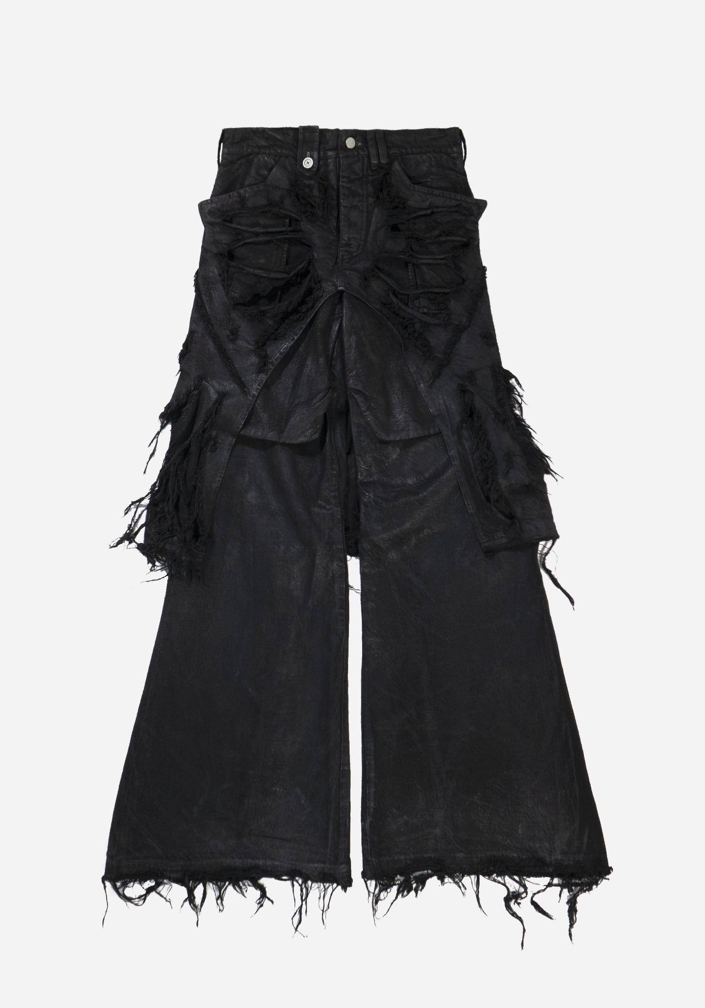 • Meticolously hand distressed outer layer with signature “RIBC4GE” technique making each piece unique and one of its kind leaving front pockets and under layer exposed.