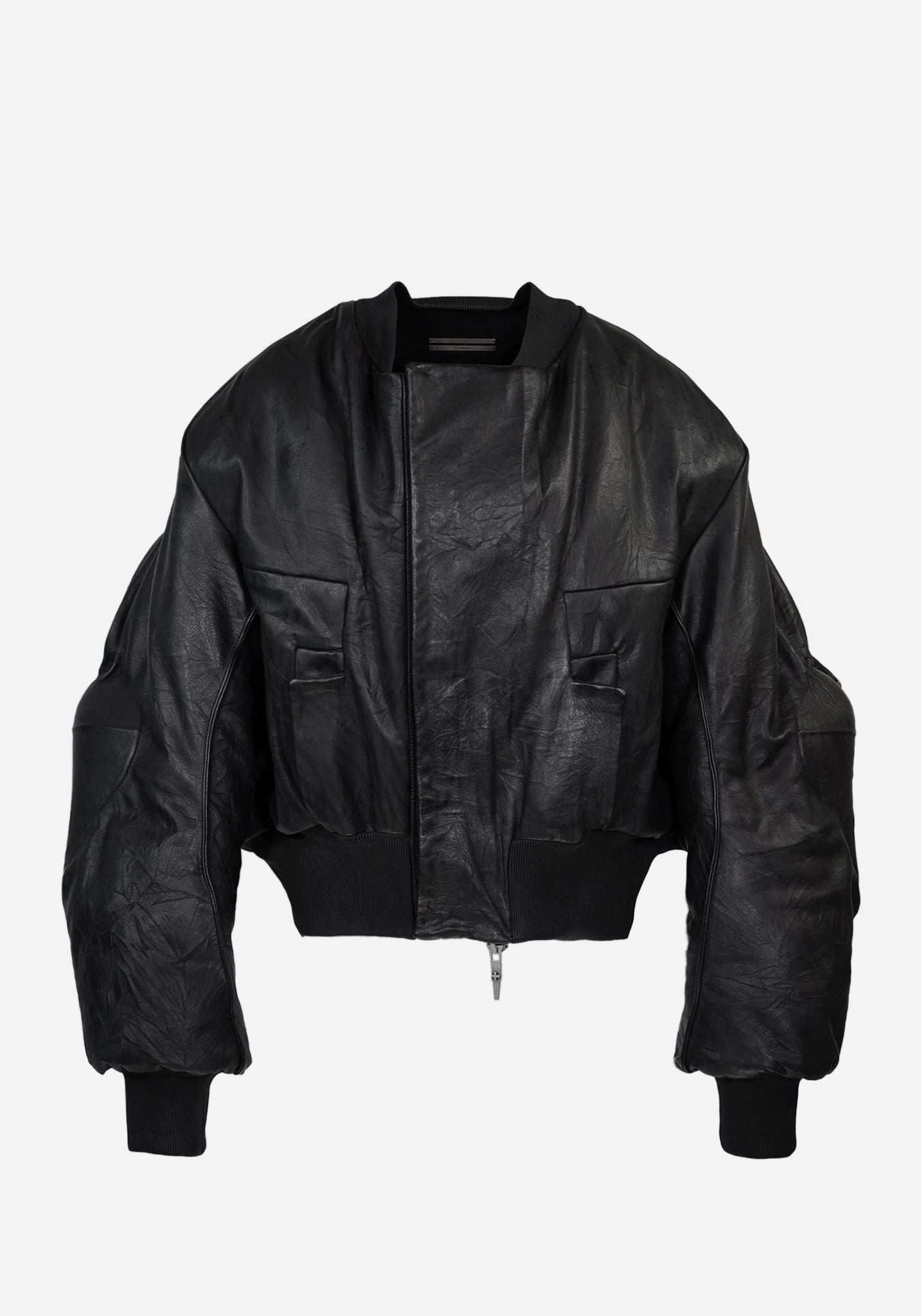 • Signature hand manipulation leather aging / creasing treatment thorough the garment.